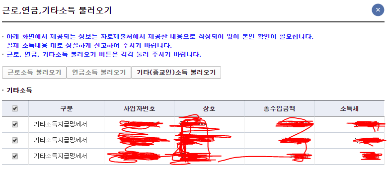 중간에 이렇게 소득이 자동적으로 불러오게 되고,