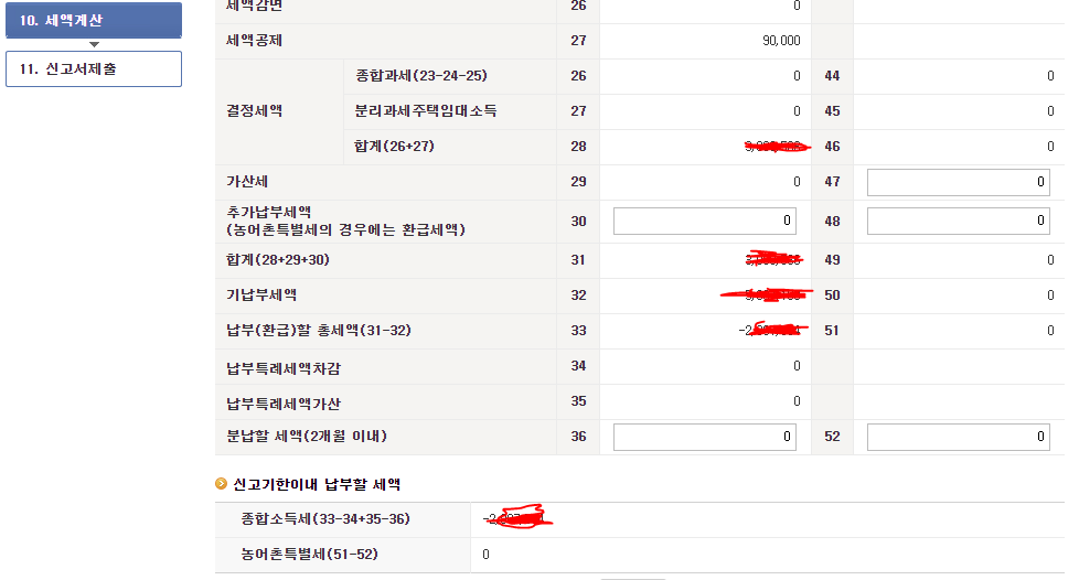 위 처럼 33번의 납부(환급)할 총세액이