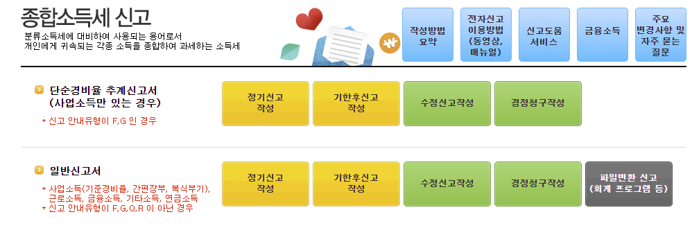 일반신고서 -> 정기신고작성 클릭