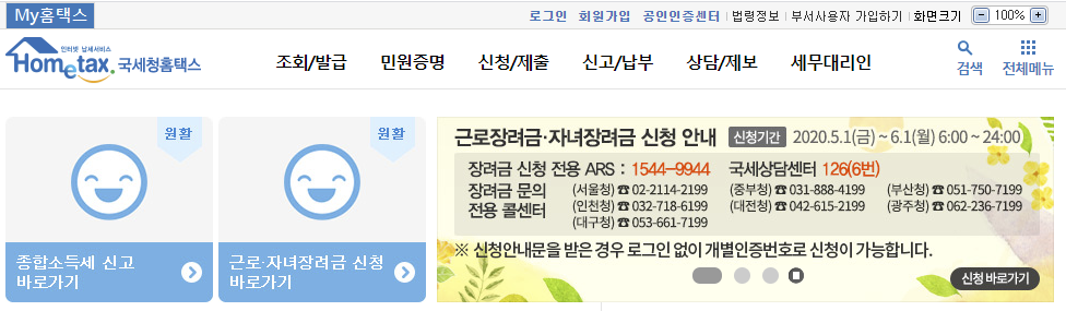 아래와 같이 홈텍스에 접속하여,