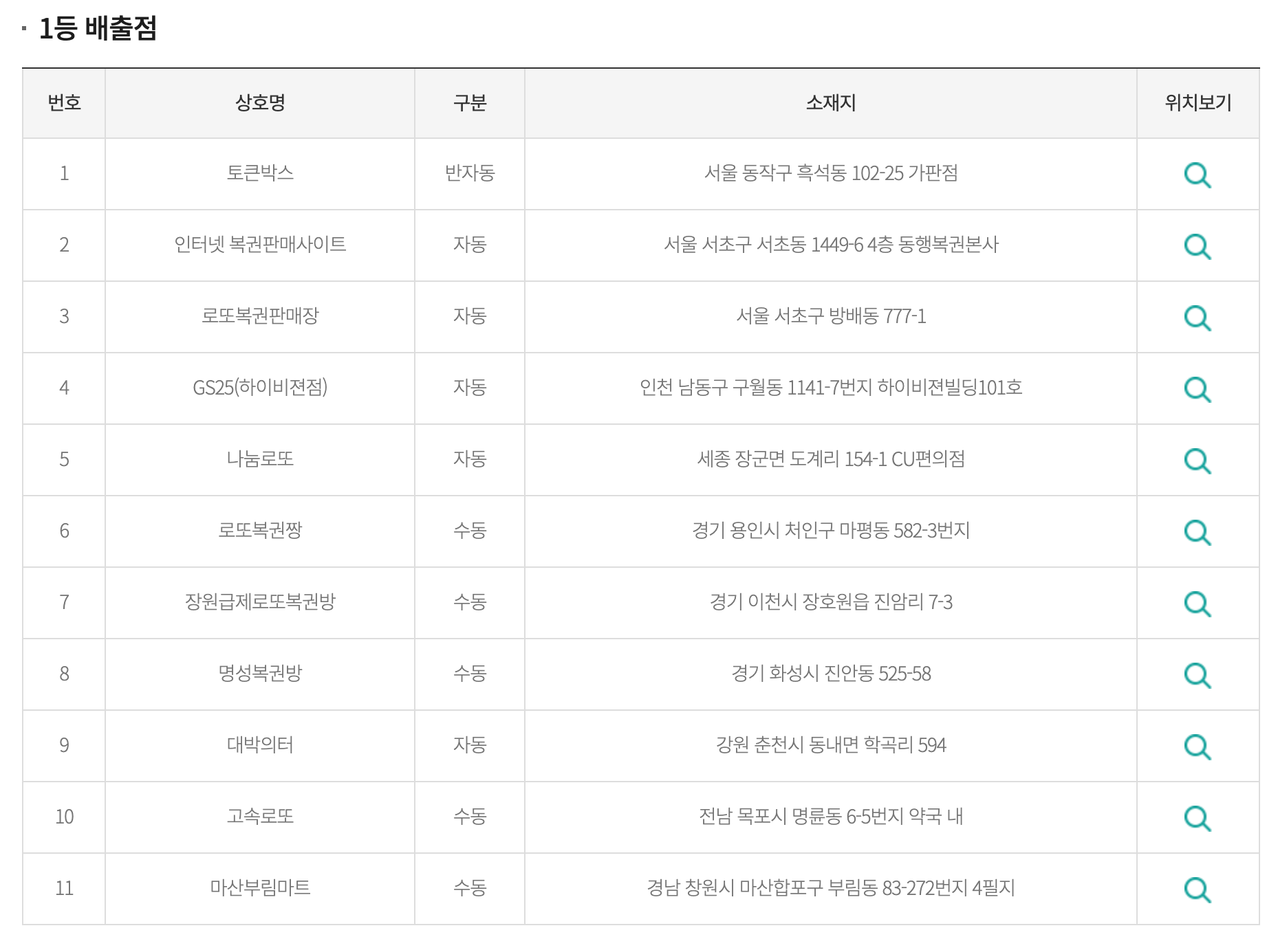 1등 당첨점(배출점)