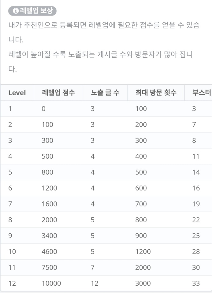 레벨당 노출가능한 글 수와