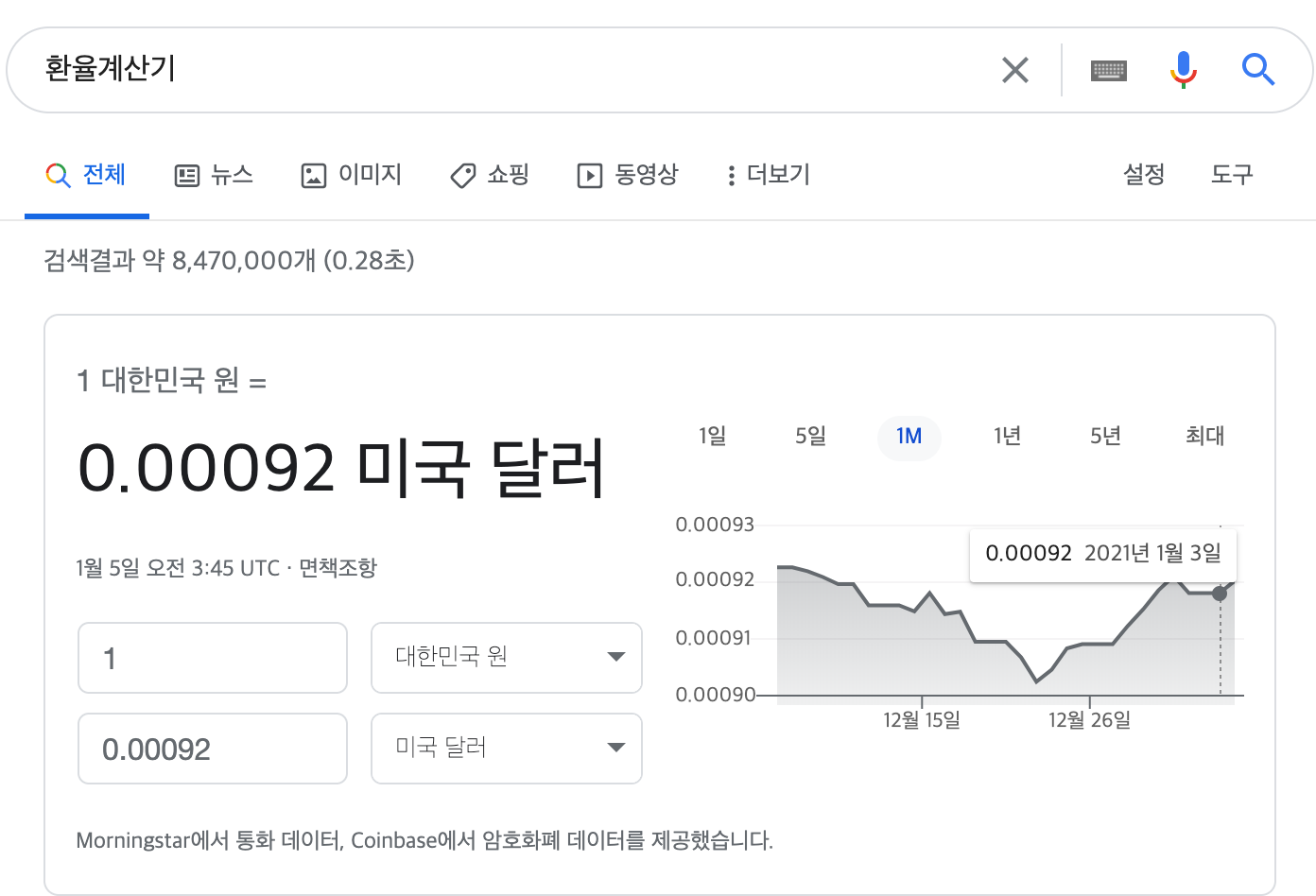 전세계/암호화폐 간편하게 환율 계산해보기 ( 구글 환율 계산기 )