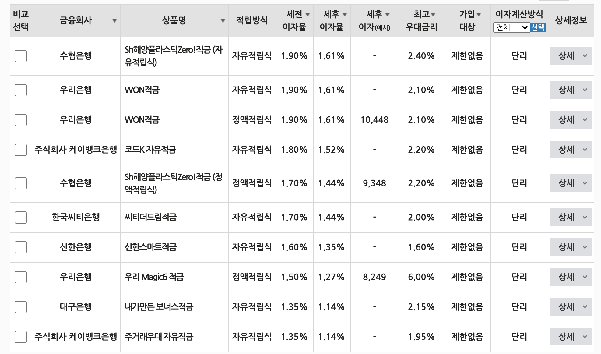 최고 우대금리를 확인한다음