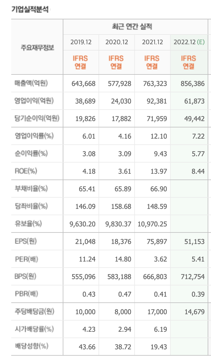 주당 배당금도 높은 배당률을 보여주고 있습니다.