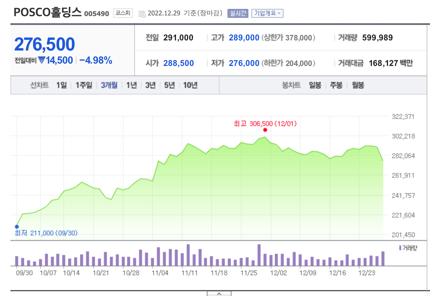 포스코홀딩스 주가는