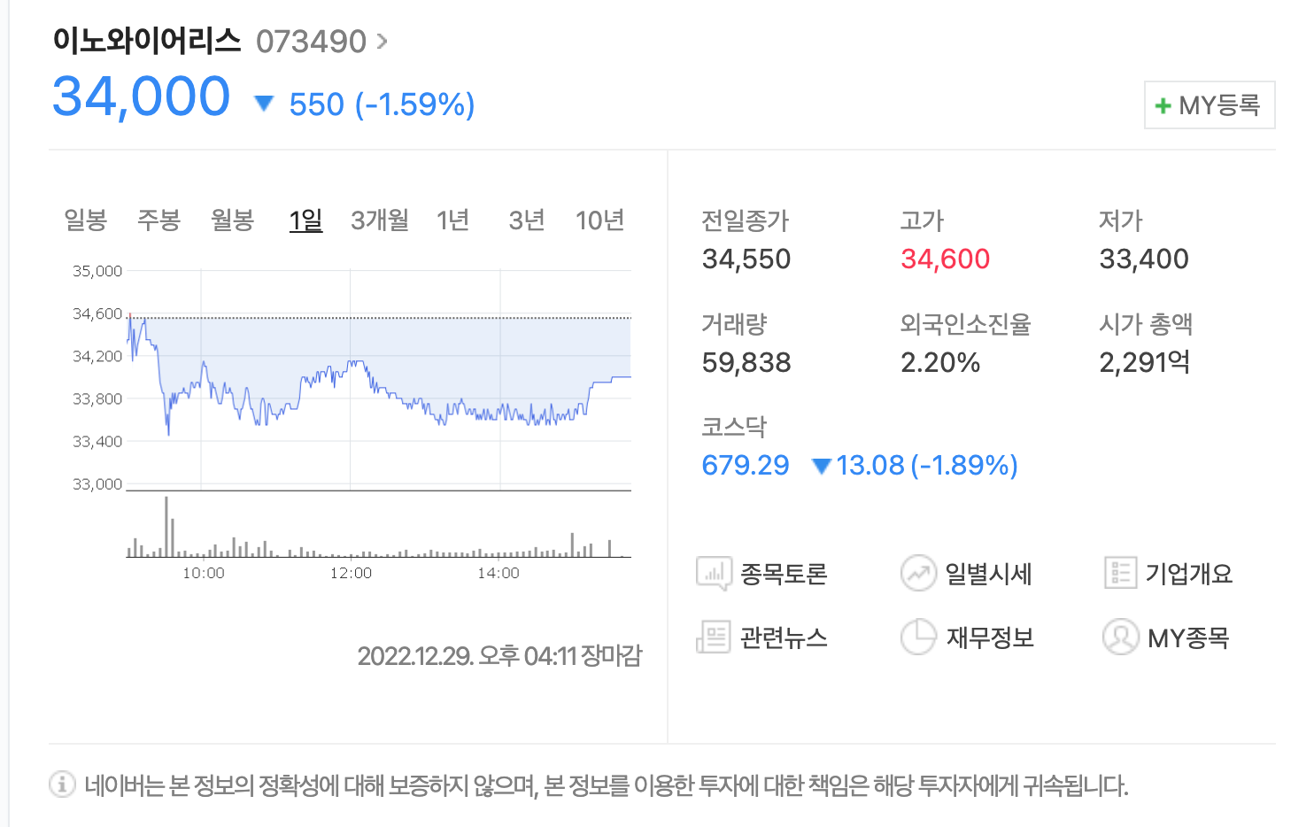 이노와이어리스 주가를