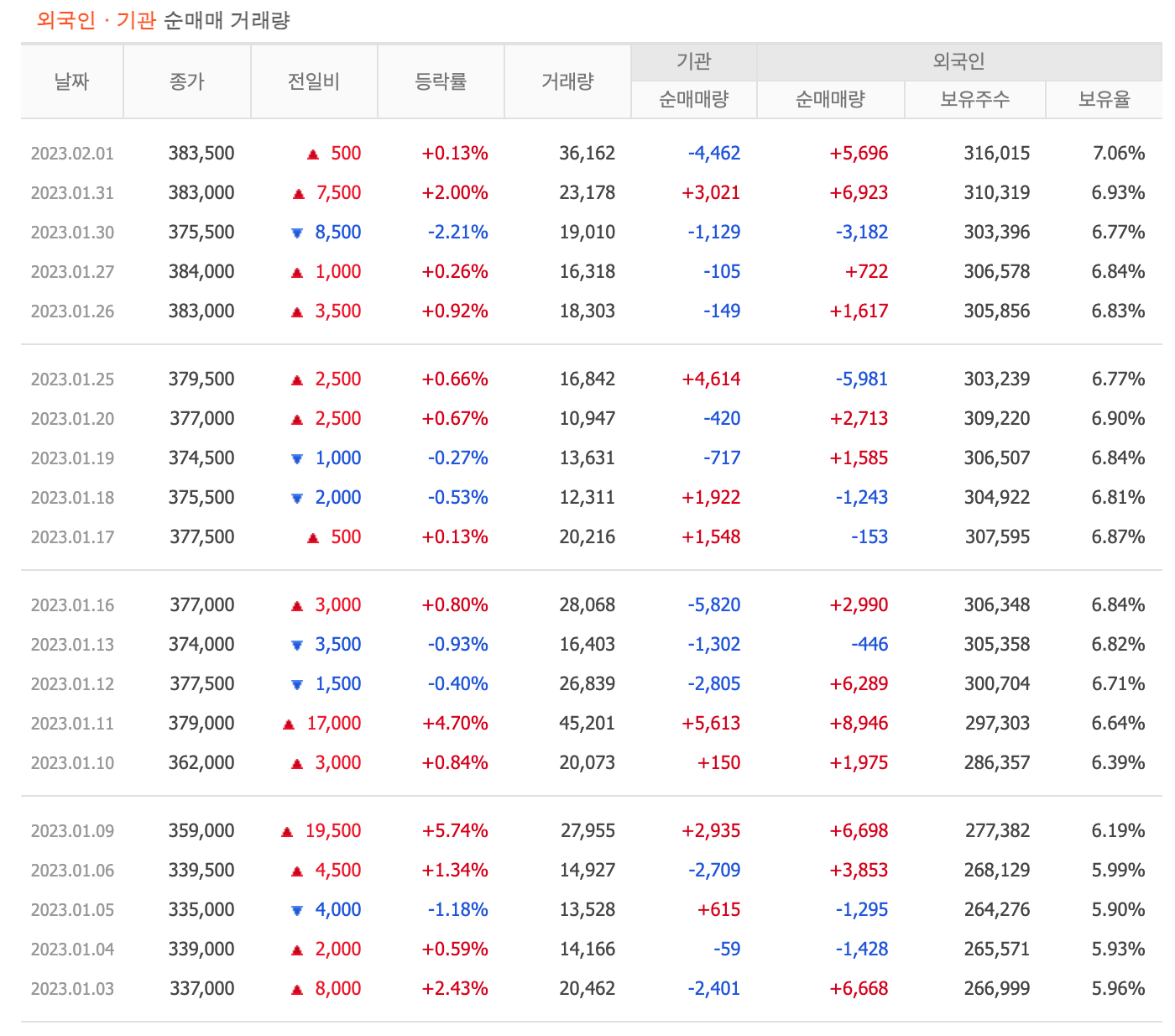 최근 주가가 상승하면서 외국인 매수가 증가하였다.