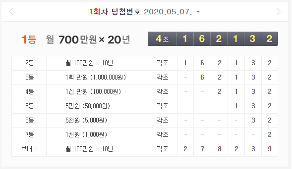 1등 당첨금은 700만원 x 20년으로 상향되었고,
