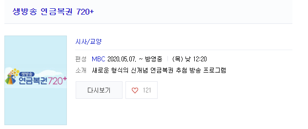 연금복권 추첨은 MBC에서 매주 목요일 낮 12시20분에